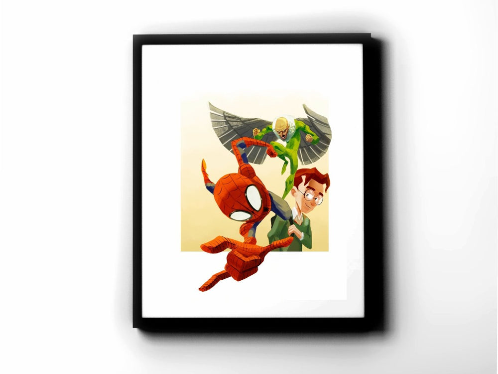 Add to your collection with this custom artwork of Spider-man vs. the Vulture!