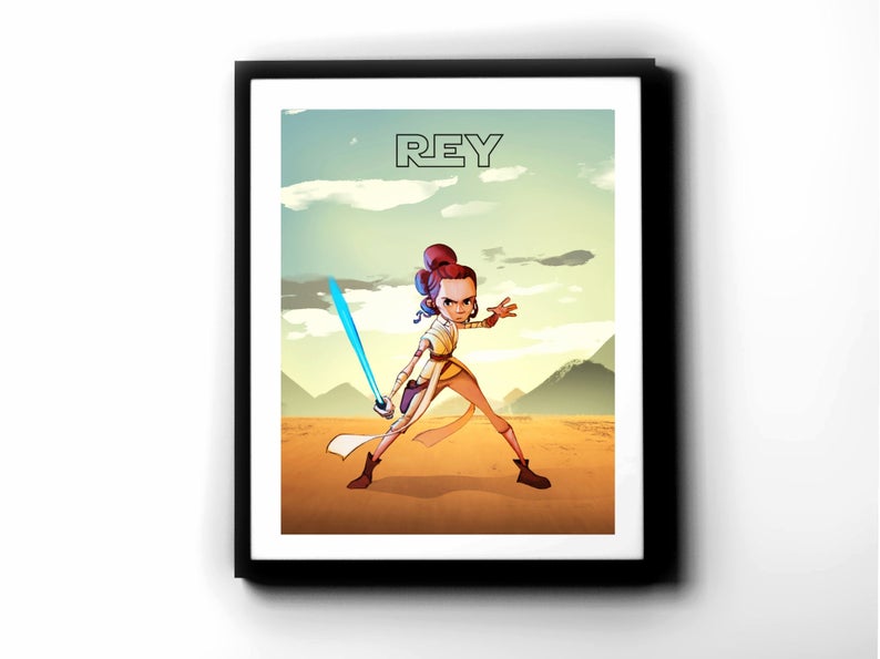 Add to your collection with this custom artwork of Rey from the J.J Abrams Star Wars Trilogy!